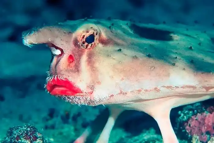 Угадайте, кто это: высокомерное выражение морды, ярко накрашенные губы, живет на дне. Нет, это не бухгалтер, не работница ЖЭКа и даже не Галя по кличке Отмена. Это нетопырь Дарвина — рыба, которая выглядит так, будто она может изрядно попортить кровь кому угодно за несданный отчёт.
