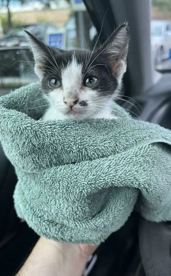 Этого грязного, исхудавшего котика нашли под машиной. Теперь у него есть дом!