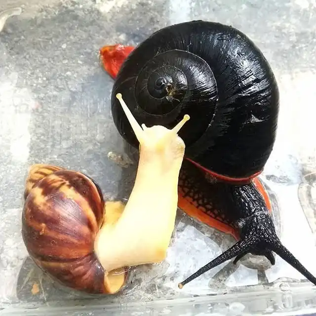 Размножаются огненные улитки так же, как все. А вот с потомством возникают проблемы. Их закармливают самой разной едой, маниакально следят за влажностью и температурой в террариумах, создают все возможные и невозможные удобства — один хрен: их детишки гибнут, не прожив и недели.