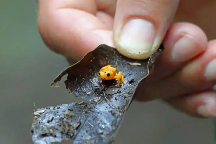 Ну давай, нападай!Отрава даёт этим крохам шанс на существование. И седло этот шанс заметно повышает! У учёных есть два предположения, зачем нужна эта пластина. Во-первых, седло защищает лягушку от ночных хищников. Вычурной окраской микро-жаба сигнализирует о своей токсичности и днём, и ночью, сокращая количество едоков. Во-вторых, эта светящаяся часть организма помогает животным плодиться и размножаться. По флуоресцентному седлу амфибии-лилипуты находят друг друга для благородной цели продолжения рода.