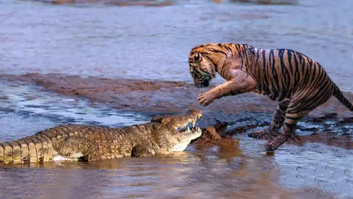 Однако тигр всё же сильней медведя. Не раз большие кошки вступали cxвaтки с бурыми медведями. И статистика таких поединков показывает, что в большинстве случаев дрaкa либо заканчивалась ничейным результатом, либо победой тигра.