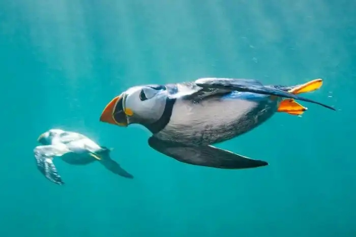 А под водой из прелестного пухляша тупик превращается в скоростную ракету. Короткие крылья служат вёслами, а перепончатые лапки — мотором. Птиц размером чуть больше голубя ныряет на глубину почти в 70 метров. А достигая предела, возвращается на поверхность всего за 40 секунд.