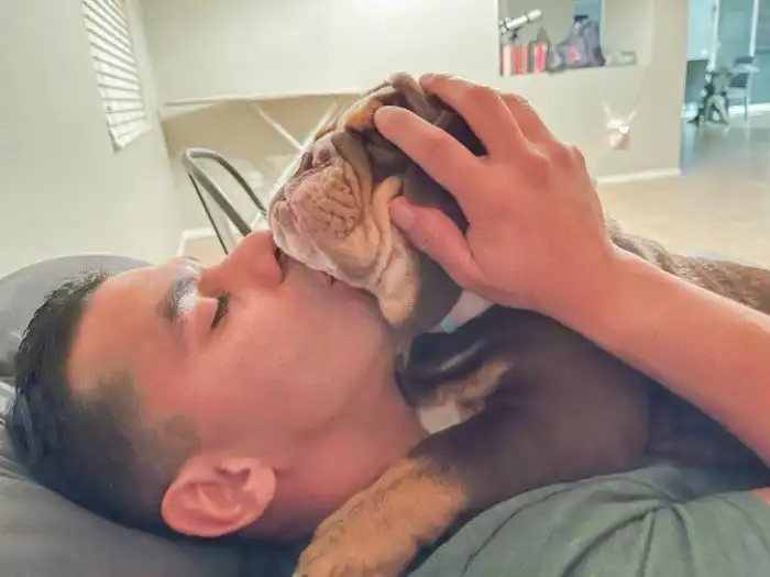 «Когда пару месяцев назад мы потеряли прежнего бульдога, он сказал, что он не сможет завести нового щенка. И вот он с Зевсом, щенком, которого он не хотел и за которым ехал 4 часа»