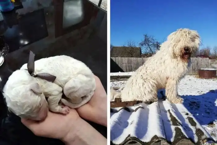 Щенки рождаются вполне обычными пушистыми пирожочками. Но к двум годам их шерсть скатывается в шнуры-дреды. Почти каждая выпавшая шерстинка навсегда останется на собаке.