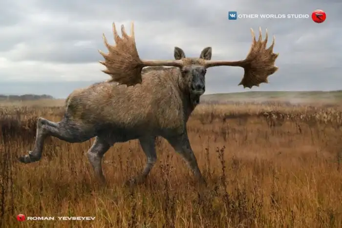 Род гигантских оленей, Cervalces на латыни, составляли всего три известных вида. Топтали нашу землю большерогие красавцы пару миллионов лет назад. Вымерли они всего немного не дожив до завершения Ледниковой эпохи.