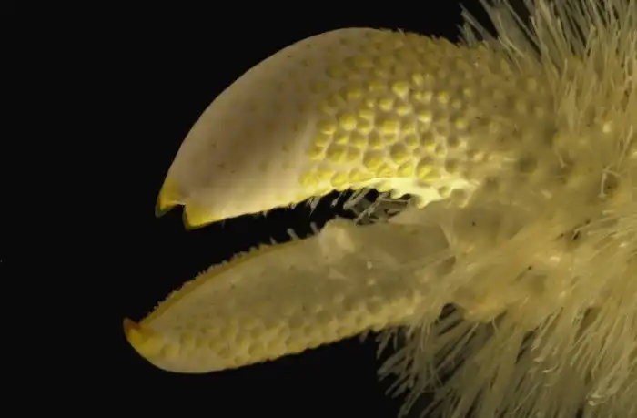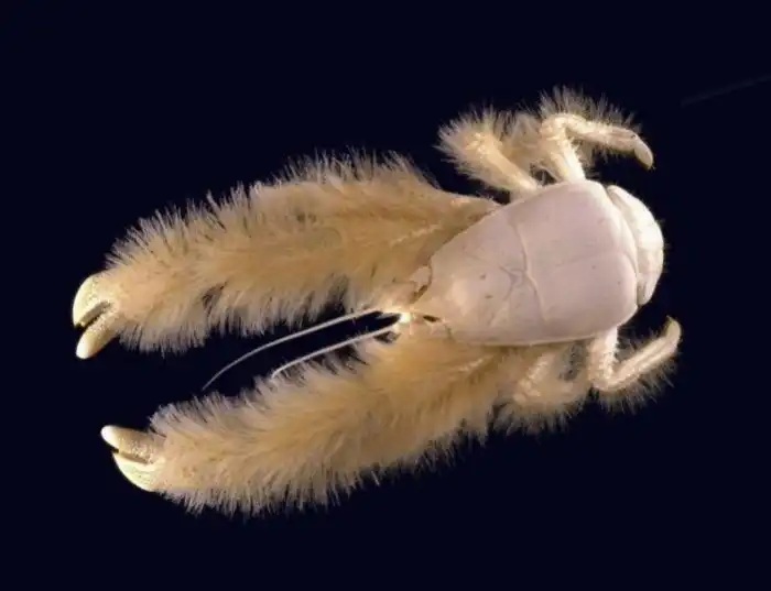 В щетинках на лапках живут бактерии. Они вылавливают токсичные вещества из воды и используют её в своём метаболизме. Ракообразному же достаётся чистая, насыщенная кислородом водичка. Лишь благодаря природному скафандру краб выжил в таких экстремальных условиях.