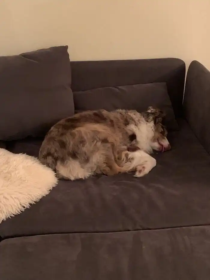 "Мы приютили Чарли вчера. Вот как он заснул сегодня после долгой прогулки в лесу"