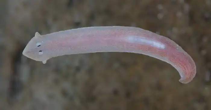 А это симпатичное (впрочем, кому как) существо называется плоский червь-планария: