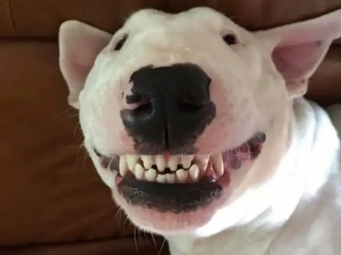 Для тех, кто не верит: зубов у бультерьера столько же, сколько и у других собак — 42.