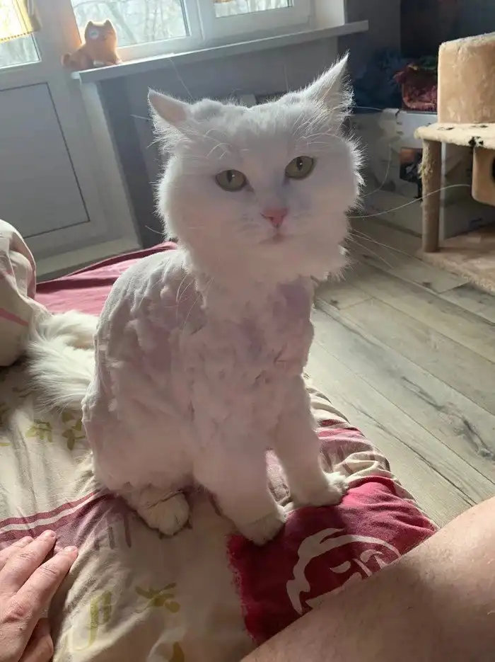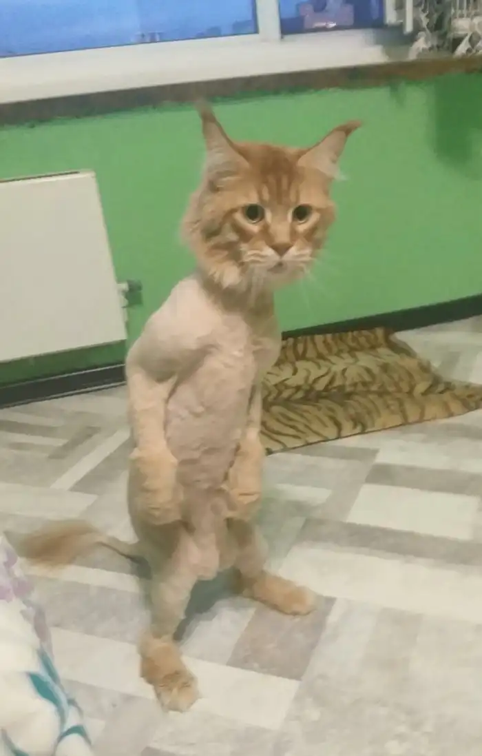 Кот плохо вёл себя у грумера и в итоге остался с такой стрижкой