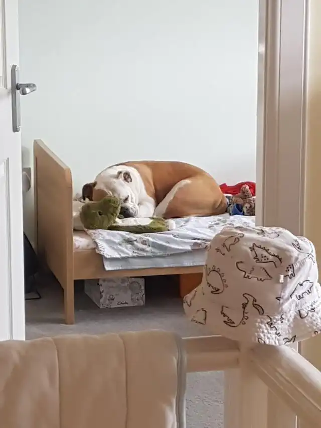 С тех пор, как родилась дочка, пёс не отходит от неё ни на минуту