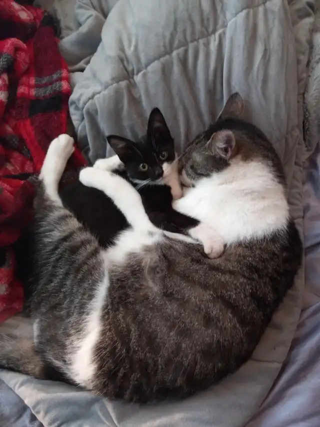 Наш кот привёл с улицы бездомного котёнка, и теперь он тоже наш!