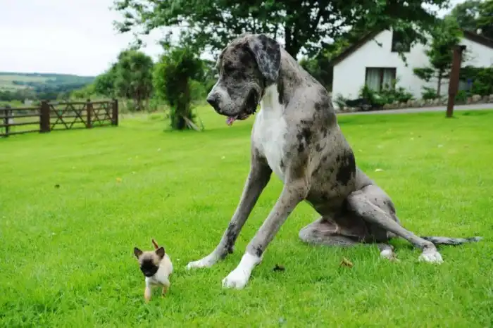 Немецкий дог, один из родоначальников несостоявшейся породы. Это крайне большое и флегматичное создание. На агрессию великана вывести очень сложно.