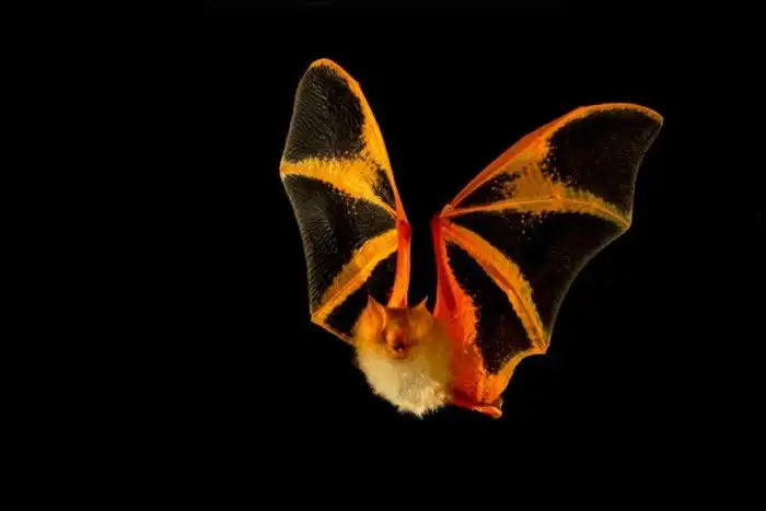 Издалека животину можно принять за гигантского шмеля или крупную бабочку. Размерами летучая мышь не блещет — весит всего 5 граммов и залита солнечно-оранжевой краской от хвоста до макушки. Но нашей «бабочке» такая окраска на руку: в куче сухих листьев мыша разглядеть сложно. Да и хищник дважды подумает, жевать ли его — в дикой природе не принято без раздумий глотать что-то яркое. Так уж повелось.