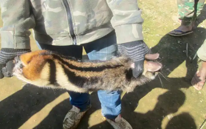 Специально за косыми по горам никто не гоняется — дело это неблагодарное. Люди ставят ловушки. Причём капканы нацелены на других животных — шанс поймать полосатого зайца примерно равен шансу найти иголку в сене. Но если животина таки попалась, отпускать на волю её никто не станет. Местные продают уникального зверя в качестве экзотического питомца, используя соцсети.