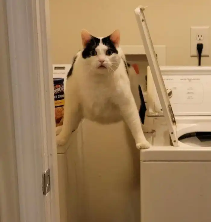 Он хотел забраться в стиральную машину, но вдруг на пути встала крышка!