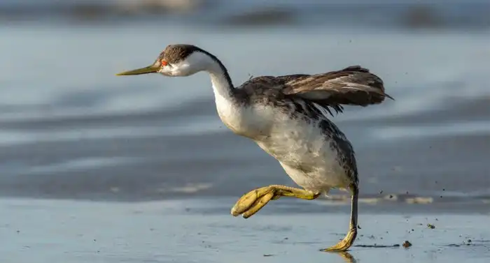 Западноамериканская поганка: Превратили водную гладь в танцпол. Как тяжёлая птица может бегать по воде и не проваливаться?