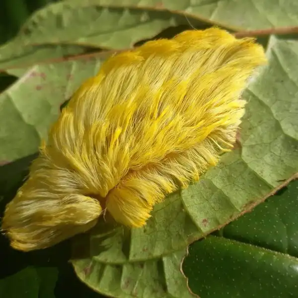 Несмотря на свой устрашающий вид, гусеница ореховой моли абсолютно безобидна. В дальнейшем она превращается в мотылька, размах крыльев которого достигает 16 сантиметров.