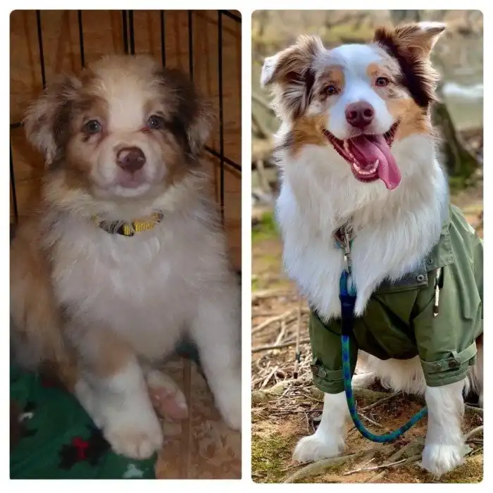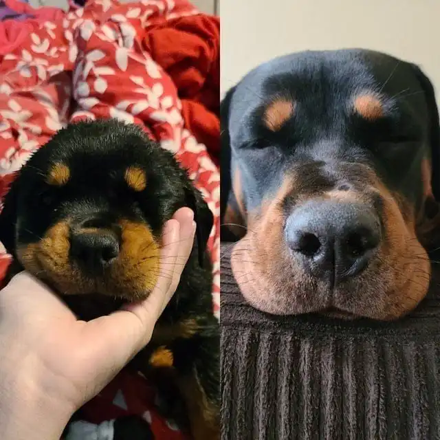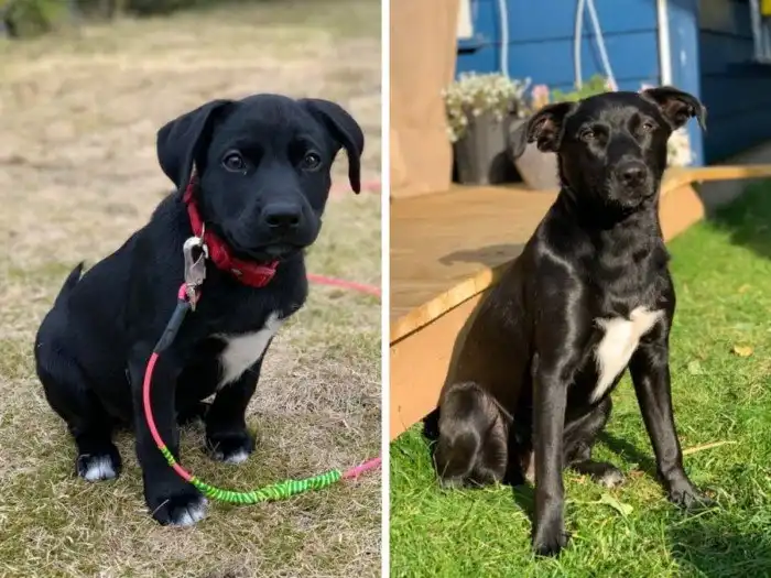 На первом фото собаке всего 2 месяца, а на втором 1 год и 5 месяцев.
