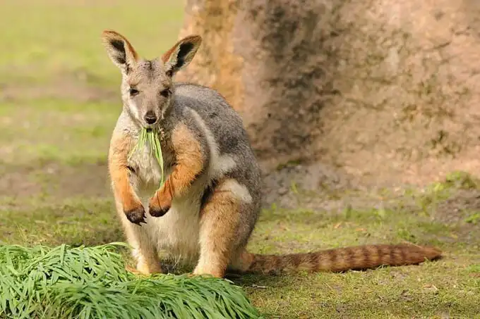 Этот небольшой кенгуру — не терпящий полумер упрямец. Он обитает только среди скал на Юго-Востоке Австралии. Грациозный попрыгун всеми силами избегает прогулок по мягкой земле равнин. Среди булыжников и отвесных каменных стен он чувствует себя более уверенно. Его уверенность подкреплена крепкими ногами и хорошим глазомером. Животина спокойно прыгает на 4 метра в длину и всегда приземляется туда, куда нужно.