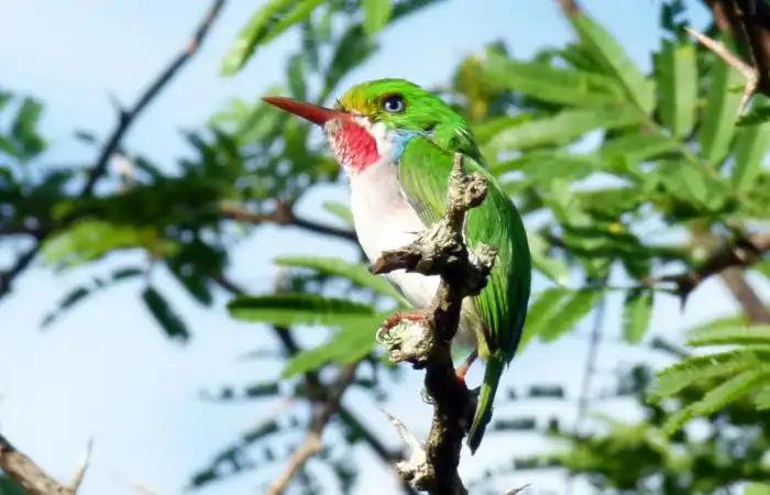 Маскировка у тоди тоже на высоте — это нам ярко-зелёное оперение кажется вычурным. А вот среди вечно буйствующих джунглей Кубы такая расцветка — самое оно, чтобы раствориться в местной растительности. Обладая такими наворотами, тоди не тратит много энергии на погоню за едой, дабы удовлетворить свой непомерный аппетит — за день птиц может съесть до 60% от своего веса и не потолстеть.