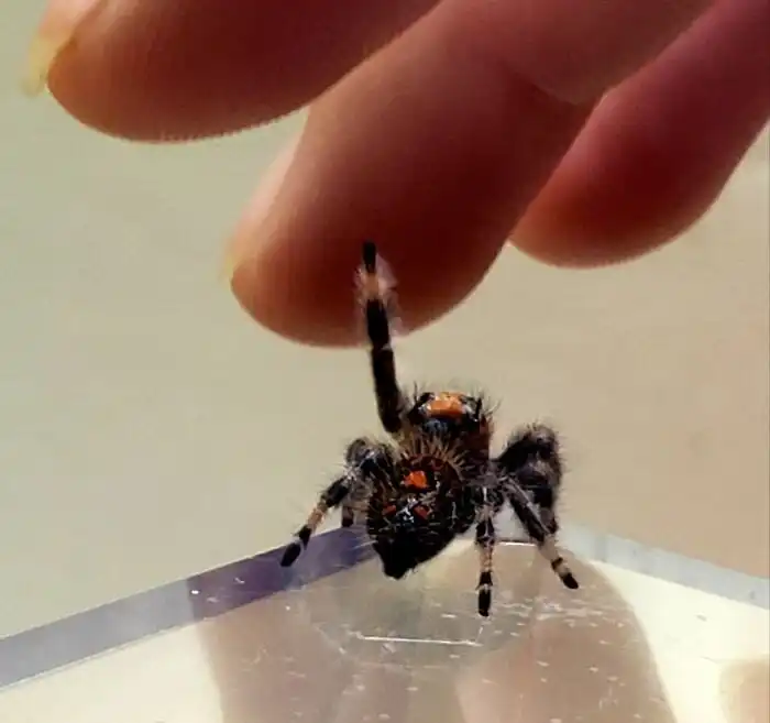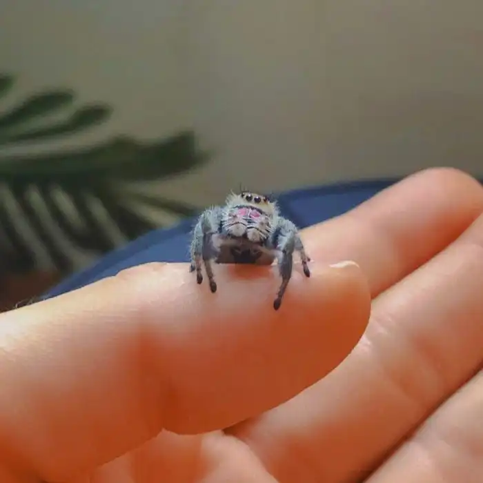 Паук-скакун абсолютно безопасен для человека. Он не кусается и не никак не способен навредить.