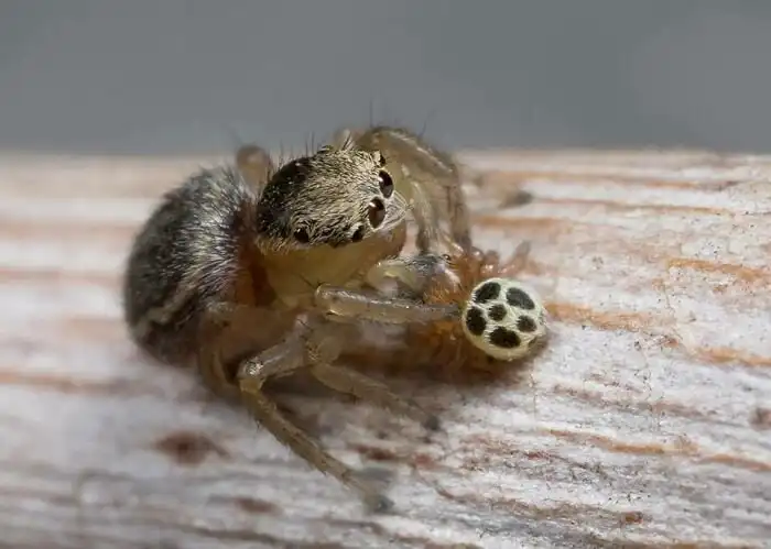 Паук-скакун — маленькое паукообразное, обладающее невероятно милой внешностью за счёт своих огромных глаз и хорошо заметных волосков. Его размеры не превышают 3-4 миллиметров, поэтому для большинства людей он всегда остается незаметным.