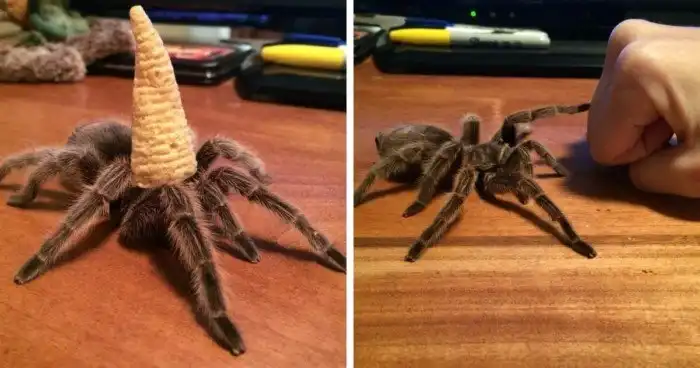 В природе существуют множество разновидностей безобидный паучков, которые не представляют никакой угрозы для человека. Напротив, многие из них даже не против подружиться с ним. Это доказывают фотографии, представленные ниже.