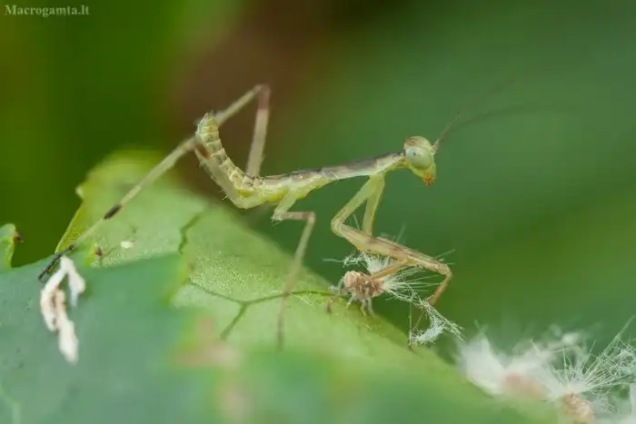 Свою жертву наш герой в лучших азиатских традициях поджидает на деревьях. Заметив добычу, букаха медленно подкрадывается к ней. Далее всё происходит молниеносно: рывок, бросок лапами — и вот очередное несчастное создание истошно бьётся в смертоносных объятьях проголодавшегося маньяка.