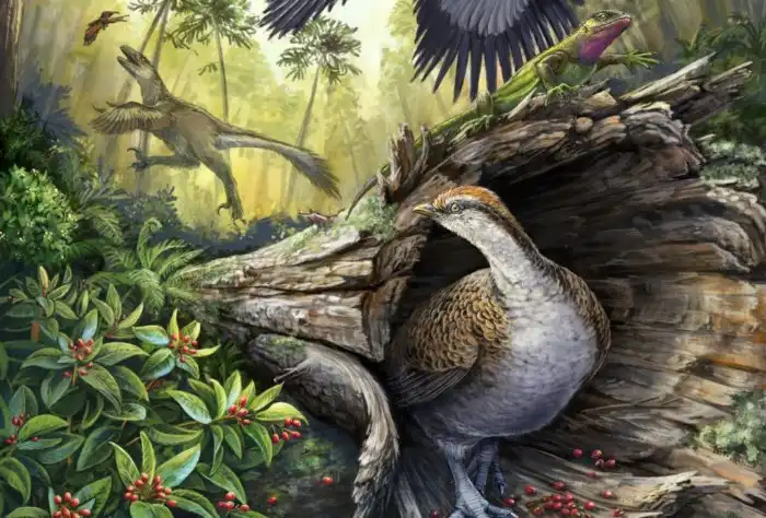 Переходным звеном между привычными нам динозаврами и птицами стал археоптерикс. Он сочетал в себе как черты ящера, так и черты типичных пернатых. Таких рептилий называют ящерохвостыми птицами.