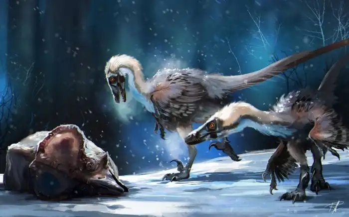 Начнём с самого очевидного: и птицы, и птичьи динозавры были пернатыми. Может перья последних и не были пригодны для гордого акта полета, но зато отлично помогали в терморегуляции. Особенно в полярных областях с натуральными зимами.