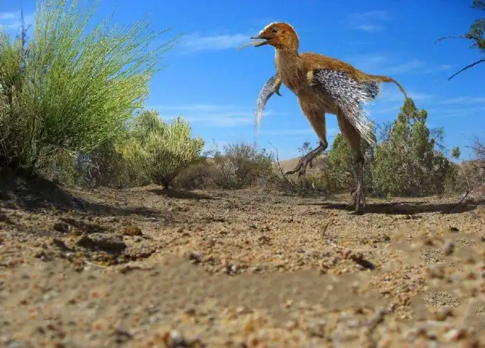 Мононик активно этим пользовался. Небольшой, всего метр длины и 3,5 кило веса, динозаврик постепенно перешёл на диету исключительно из термитов. Тут и родство с птицами оказалось кстати: тонкие, лёгкие кости позволяли экономить силы при беге, а плотное оперение спасало от каждодневных перепадов температуры. Степи никогда не славились постоянством окружающей среды.