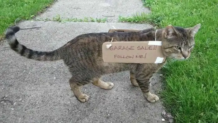 Надпись гласит, что собакам в магазин нельзя: наверняка это идея кота