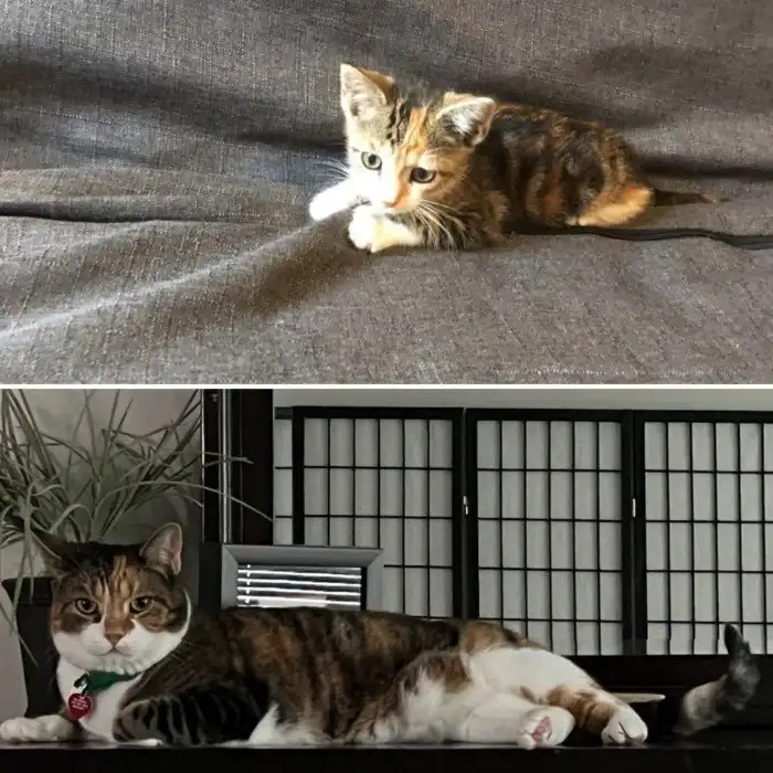 Быстро растут не только чужие дети, но и домашние питомцы. Перед вами подборка фотографий в стиле тогда и сейчас, которые показывают, как быстро растут и меняются котики.