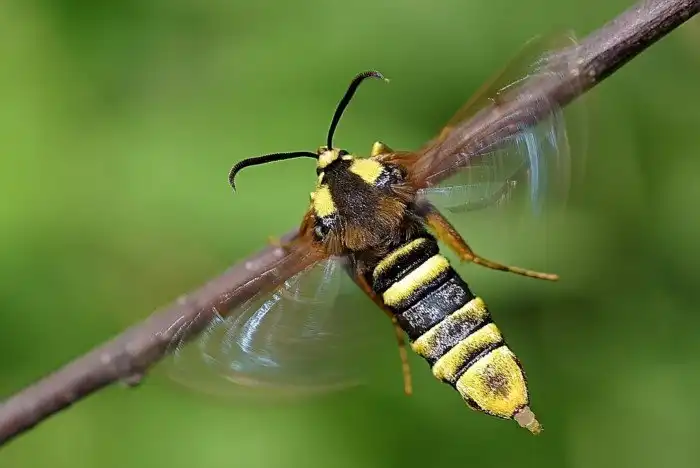 Большая тополёвая стеклянница: Эта бабочка выглядит как злобный шершень, а её личинки создают длинные лабиринты внутри тополей