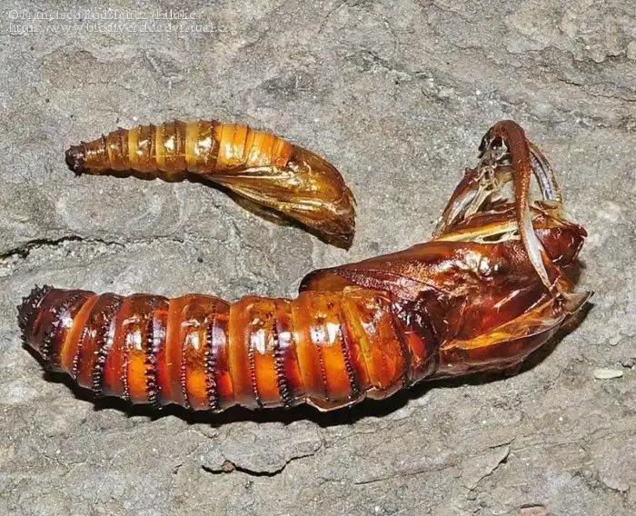 Тополь будет страдать от вредителя около 3 лет. За это время животина успеет проделать десятки новых ходов и серьёзно попортить древесину своего живого дома. В мае, поднабрав жирка, гусеница превратится в куколку. Да не простую, а брутальную — с шипами. Перед окукливанием насекомое ползёт на поверхность к тому самому входу, который она прогрызла годы назад.