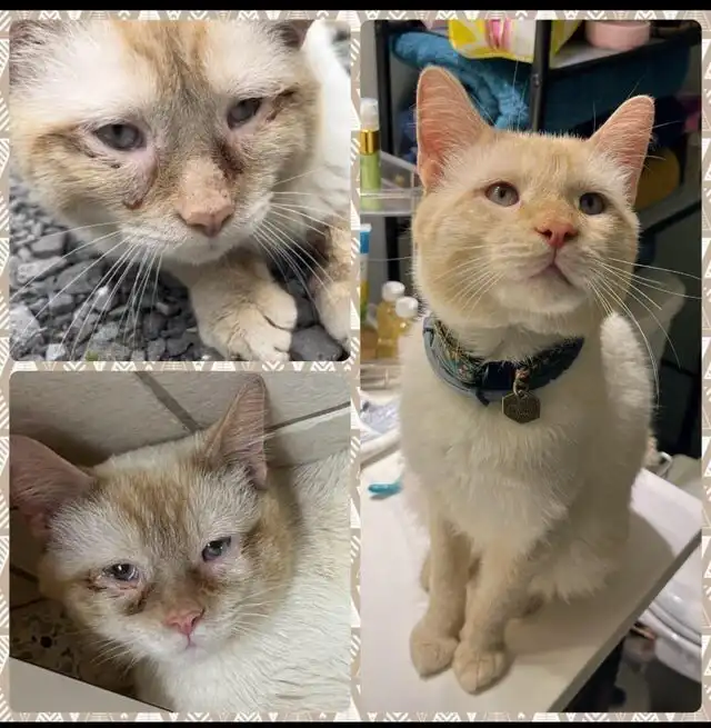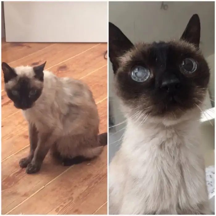 Мы усыновили этого малыша из приюта. У него местами не было шерсти, заметные шрамы на животе и конъюнктивит. Теперь он красавчик, и у него счастливая жизнь