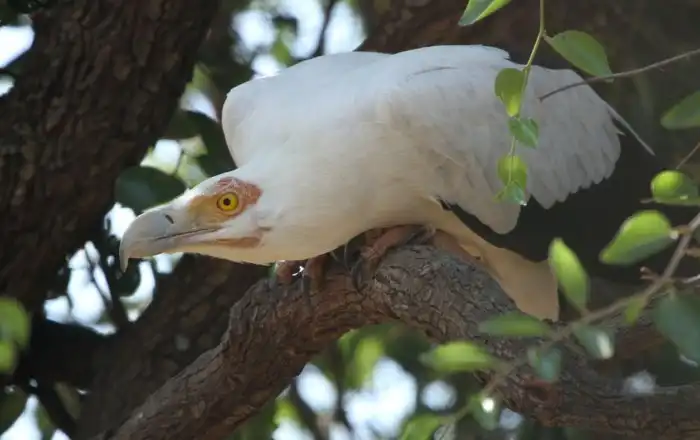 К тому же «охотится» на плоды пальм только наш пернатый друг. Никто другой не способен проломить жёсткую скорлупу и добраться до самой сочной и жирной части. А пальмовый гриф может. За всё спасибо сильному и острому клюву, который достался ему от хищных родственников.