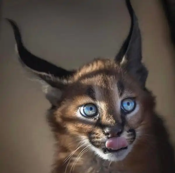 Каракал или степная рысь умеет смешно шевелить своими длинными ушами