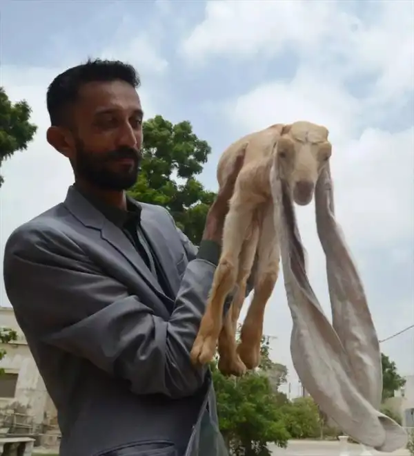 Необычная коза родилась в Пакистане. Длина её великолепных ушей составляет сорок восемь сантиметров.