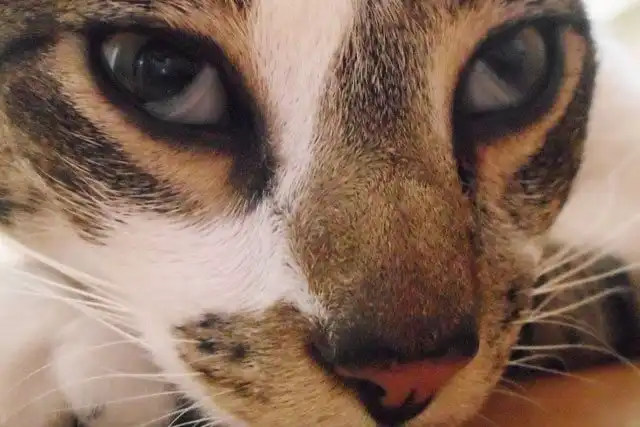 В нормальных условиях мигательная перепонка кошки практически незаметна. Но её можно увидеть когда животное спит или испытывает проблемы с глазами.