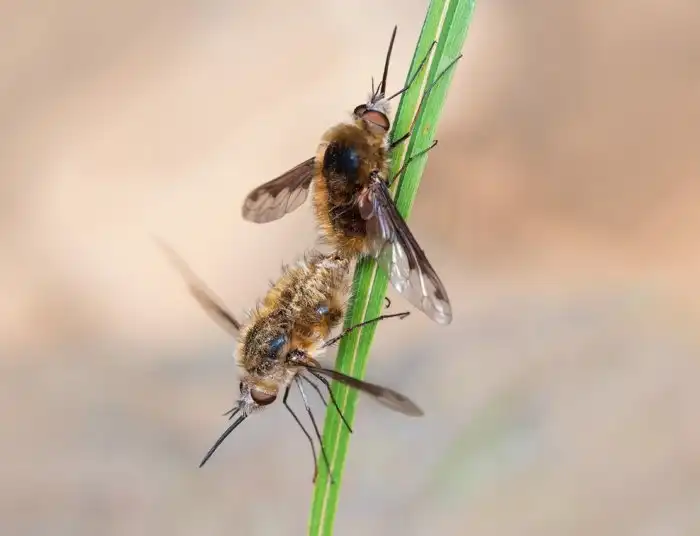 А ещё муха способна выполнять круговые рыскания вверх-вниз. Зачем она это делает? На самом деле, шут его знает; может быть, дело в брачных играх? Да, это был прекрасный и ни разу не палевный переход к теме продолжения рода. Это дело у жужжал крайне тёмное. После акта любви самка откладывает пару тысяч яиц. Да не куда попало, а в гнёзда одиночных пчёл.