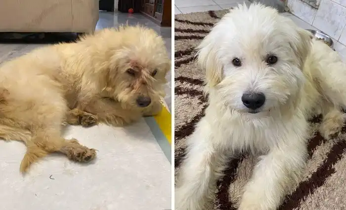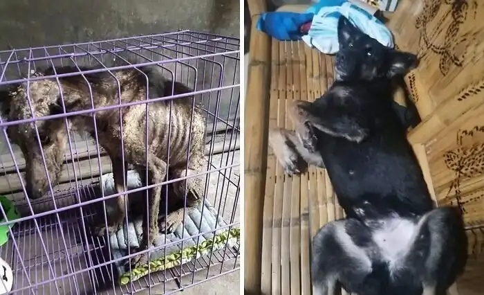 Эту пугливую голодную собаку нашли на улице, когда она искала еду для своих щенков. Вот какая трансформация!