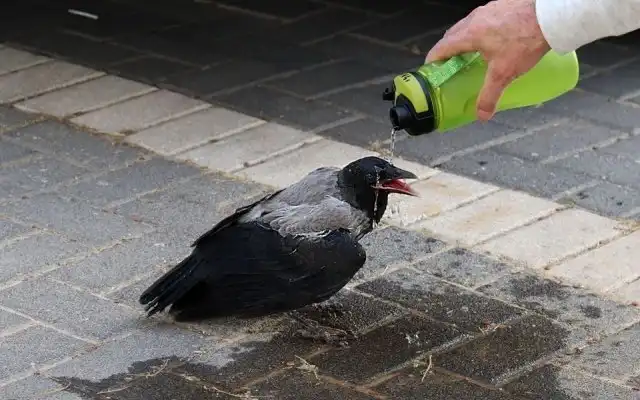 В случае с птицами перегрев происходит, когда температура окружающей среды приближается к температуре их тела — 40+ градусам. Помочь им можно лишь одним способом: дать больше воды. Только вот способ применения может быть разным.