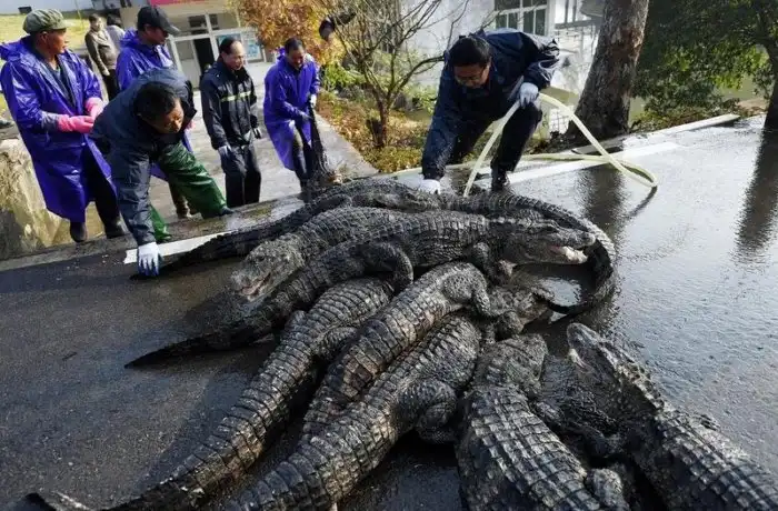 Сейчас каждый взрослый китайский аллигатор на вес золота — вид находится на грани вымирания. Но его активно пытаются спасти. В Китае работает специальный центр разведения, который выпускает зубастую малышню в природу сотнями — поэтому популяция добрых и скромных рептилий потихоньку растет.