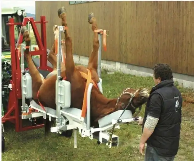 Его предназначение очень точно описано в названии: данный девайс и множество ему подобных сконструировали, чтобы придавать различные положения коровьей тушке, в том числе и вверх тормашками. Но делают это не ради мемных фоток (хотя менее мемными они от этого не становятся). Цель переворачивания до банальности проста — проведение всяческих ветеринарных мероприятий.
