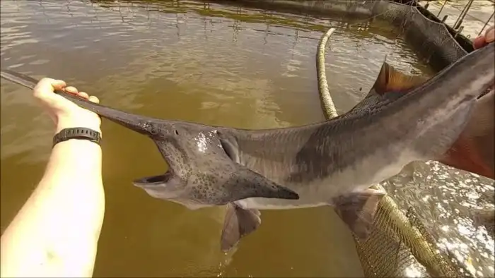 Веслонос: Аналог металлоискателя на месте носа. Только ищет он пищу. Странная и древняя рыба мутных рек