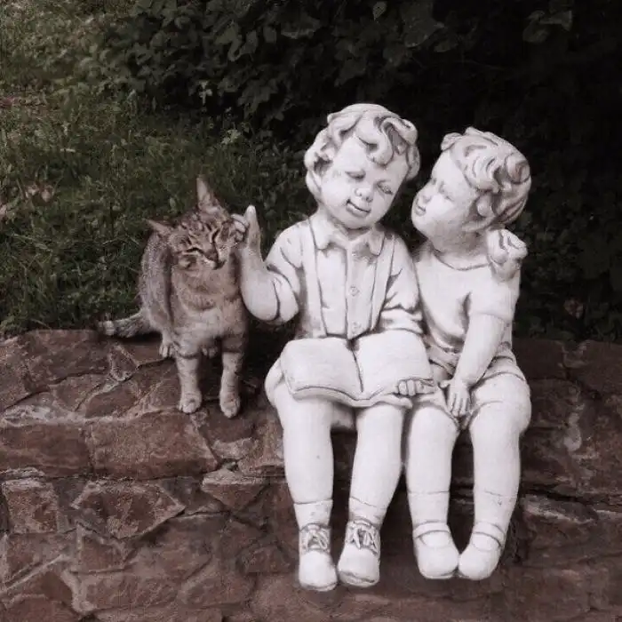 Любовь любовная произошла между этим котом и статуей представителя кошачьих