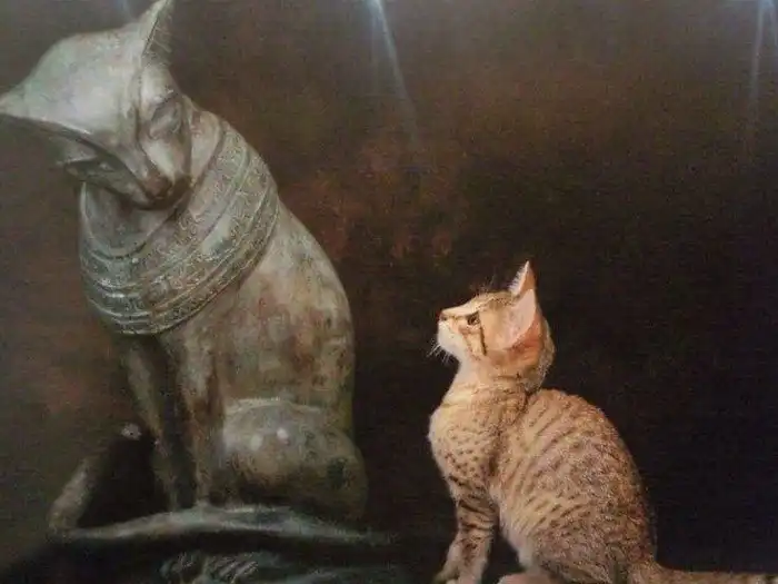 Египетский кот смотрит на своего величественного предка.