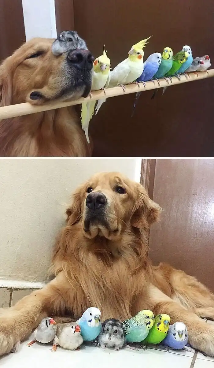 Пёс, 8 птиц и хомяк - вот такая дружная компания